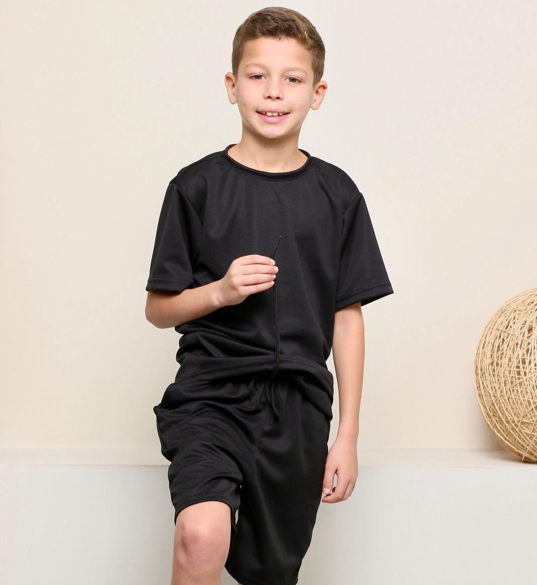 Garanta conforto e estilo para os meninos com o nosso Conjunto Infantil Dry Fit, perfeito para os dias quentes de verão! Composto por camiseta básica e short com ótimo caimento, é ideal para brincar, passear e se movimentar com liberdade.